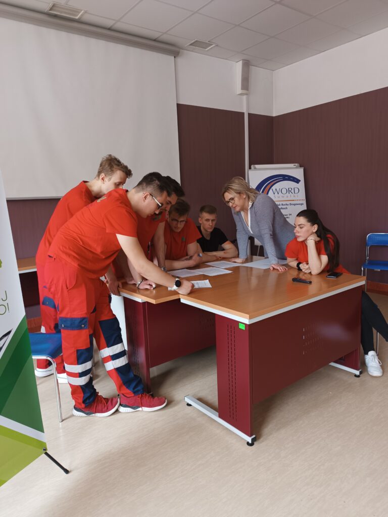 2. Udzielanie pierwszej pomocy – konkurs polegający na sprawdzeniu prawidłowych zachowań z zakresu udzielania pierwszej pomocy (inscenizacja wypadku z osobą poszkodowaną).